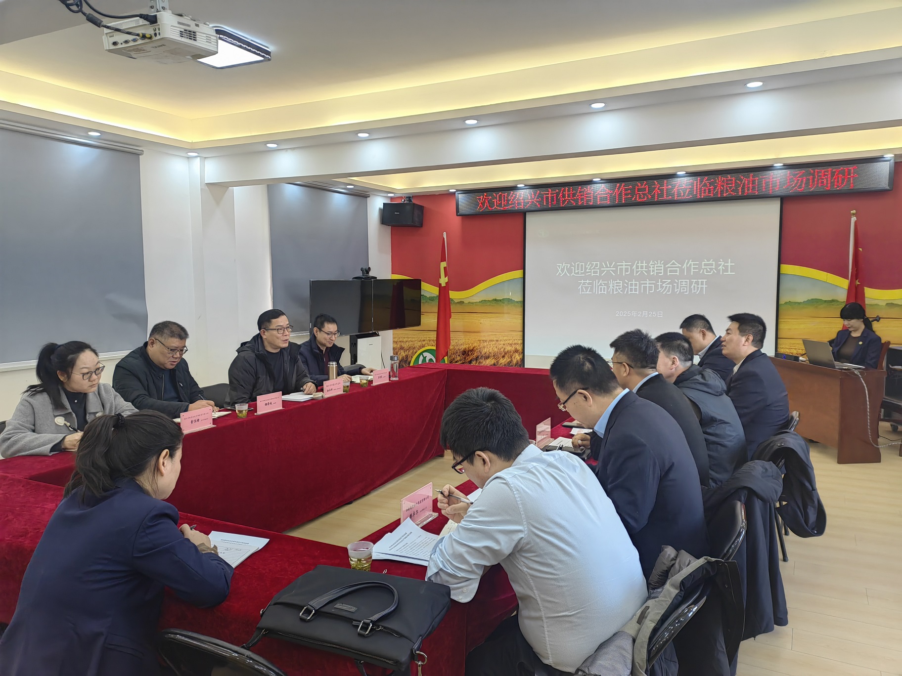近日,浙江省紹興市供銷合作總社副主任一行就農(nóng)產(chǎn)品商貿(mào)和物流基礎(chǔ)設(shè)施建設(shè)等內(nèi)容到西安商貿(mào)物流集團(tuán)調(diào)研交流。集團(tuán)分管領(lǐng)導(dǎo)、企劃部和糧油市場負(fù)責(zé)同志參加調(diào)研。